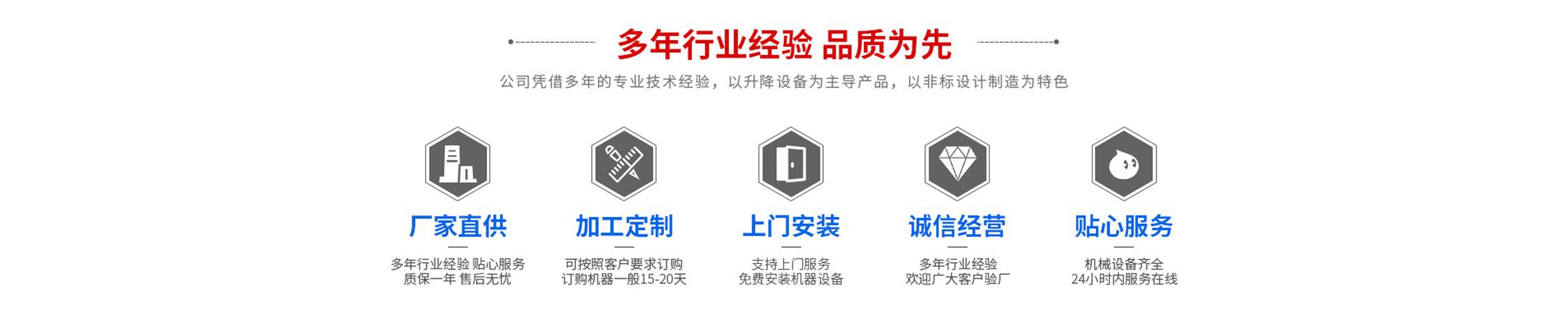濟南翔宇升降機械有限公司是集研制、設計、開發、生產為一體的電動液壓升降平臺,液壓升降貨梯,升降機,移動升降機,貨梯,升降機廠家,升降平臺價格,升降平臺廠家專業生產企業。本公司生產設備精良,技術力量雄厚,工藝先進合理,檢測手段齊全,所有產品符合國家行業標準,全部產品已經通過國家特種設備檢測站檢測。公司生產的液壓升降臺,采用意大利、法國、德國液壓泵站系統,意大利液壓系統防爆裝置和液壓自鎖裝置嚴格按照國家標準。公司還可以根據用戶的需求設計制造包括特殊尺寸、承載能力、防爆電器的液壓升降臺。  公司擁有一批優秀的設計人才,其中僅高級技術人員就20多人,他們或是來自名牌高等院校,或是在長期實踐中精通了行業的先進技術,成熟中求創新,使得我們的產品處于不敗;同時我們還擁有一大批技術熟練的產業工人,他們是保證高等級產品質量的關系因素。  公司經過多年的對液壓升降設備的研制和探索,積累了豐富的專業技術和經驗,現已成為國內設備先進、產品齊全的液壓升降平臺,液壓升降機生產制造企業。目前公司產品有八大系列六十多個品種,產品質量符合JB/T9229.1(2.3)-1999標準。產品設計新穎、結構合理、升降平穩、操作簡單,廣泛應用于工礦企業、鐵路、公路、機場、郵電、石油、電力等部門的高空作業、安裝、維護;生產線上的貨物...